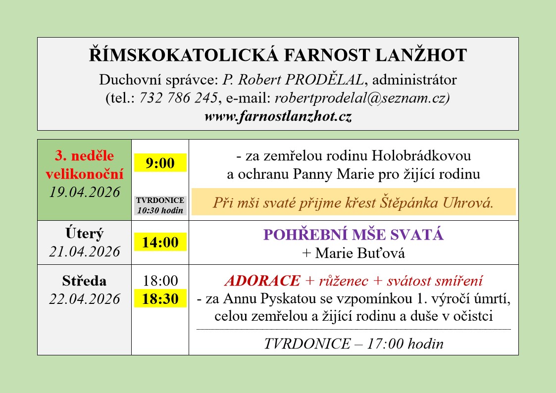 MODLITBY, ZAMYŠLENÍ A DOPORUČENÍ