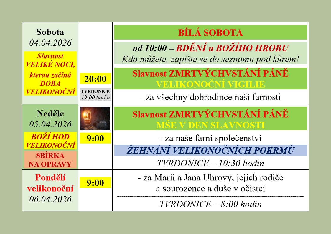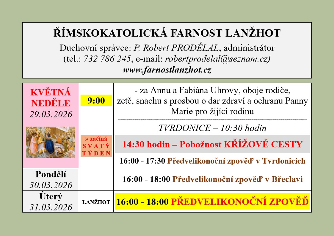 | Neděle 30.6. | 9.00 | Marie UHROVÁ |