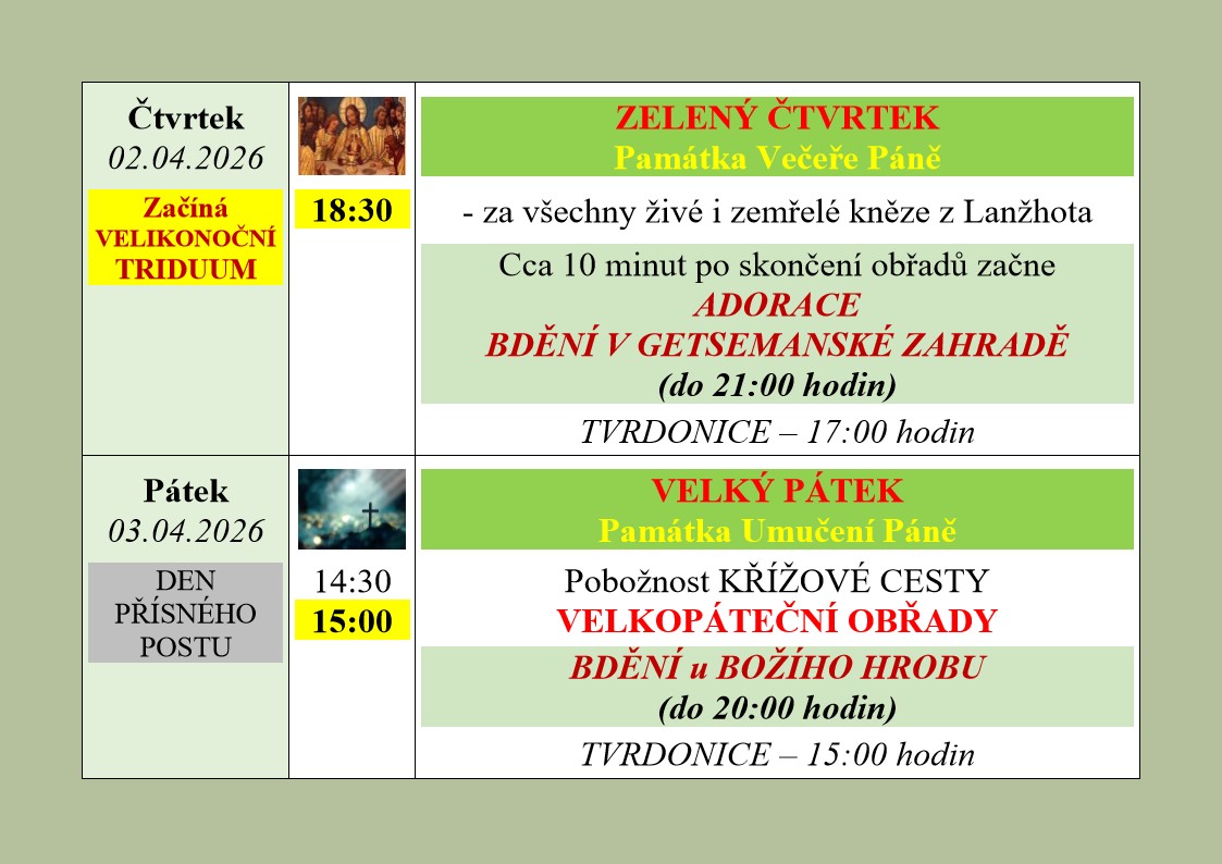 | Neděle 2.6. | 9.00 | Helena SVAČINOVÁ |