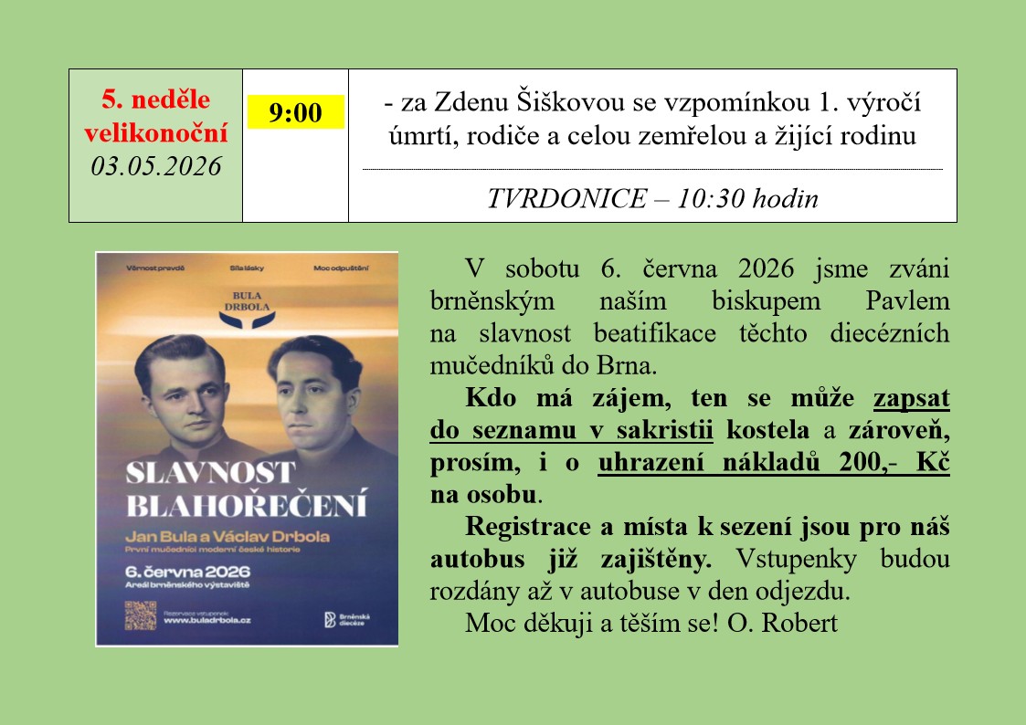 bude objednán autobus - odjezd od kostela v 1? .00 hod. | ||||