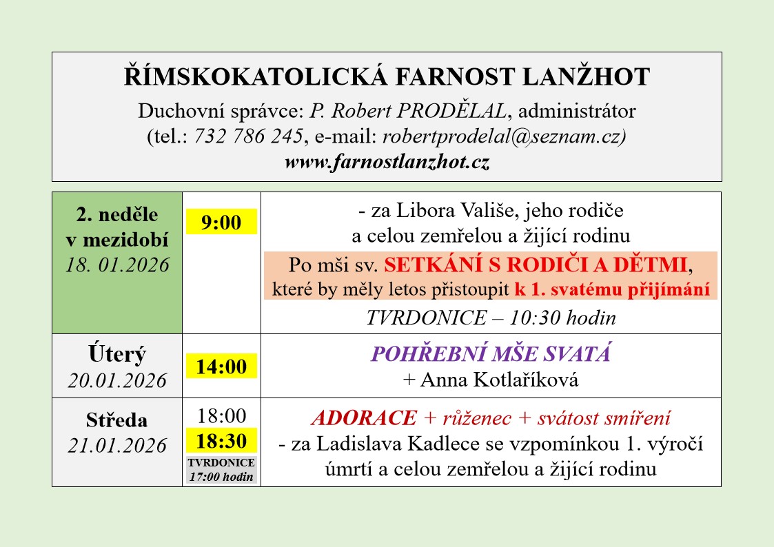 tel.: 519 336 481 a nebo elektronicky na e-mail farnosti: lanzhot@dieceze.cz