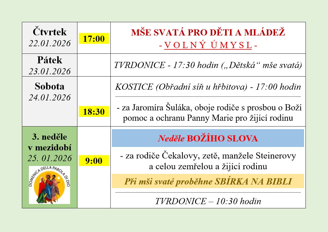 Příprava ke svátosti biřmování bude v kostele včas ohlášena.